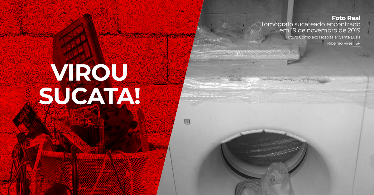 O prefeito em exercício de Ribeirão Pires, Gabriel Roncon (PDT), declarou em entrevista ao Diário que o tomógrafo encontrado em 19 de novembro dentro de sala sem portas em área do futuro Complexo Hospitalar Santa Luzia (que está com as obras paralisadas há seis anos e depende de recursos do governo estadual para que a construção seja retomada) deverá ser descartado. Segundo ele, que substitui o prefeito Adler Kiko Teixeira (PSB), em férias, o equipamento não tem condições nenhuma de uso.